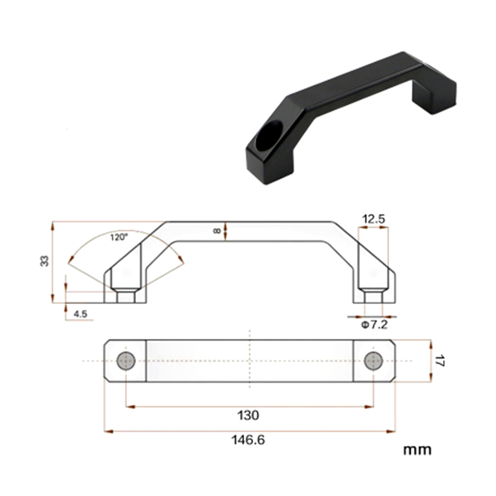 Industrial Black Nylon Center Distance 120mm 140*40*25.5mm Door Cabinet Window Handle|5Pcs