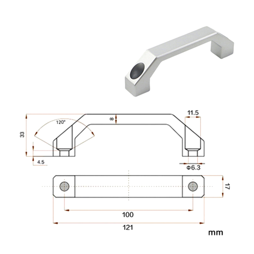 Matte Silvery Aluminum Alloy Center Distance 100mm 121*33*17mm Door Cabinet Window Handle|5Pcs