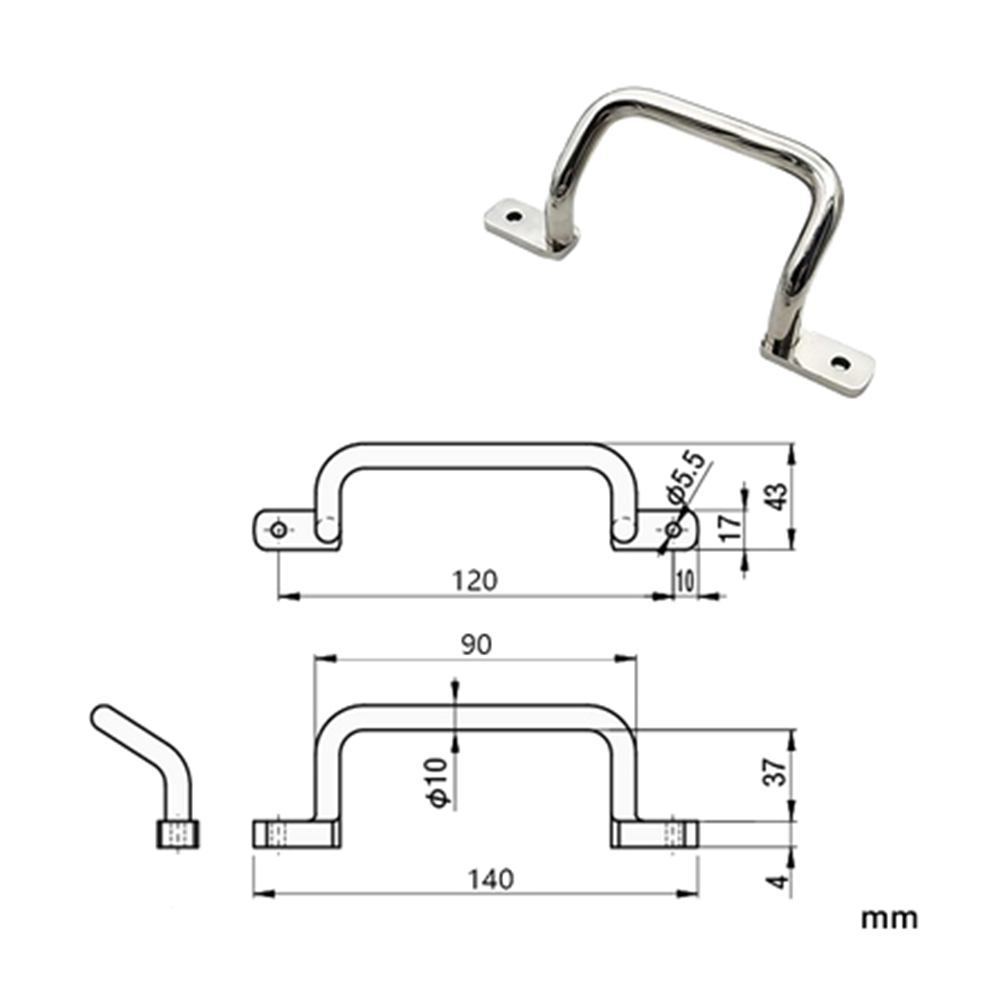 Crooked SU304 Stainless Steel Center Distance 120mm 140*37*17mm Door Cabinet Window Handle|1Pcs