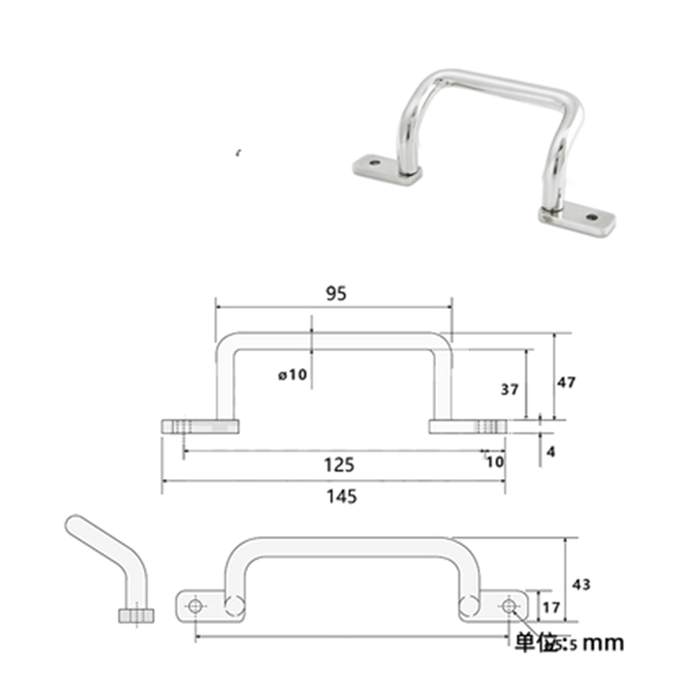 Crooked SU304 Stainless Steel Center Distance 125mm 145*37*17mm Door Cabinet Window Handle|1Pcs