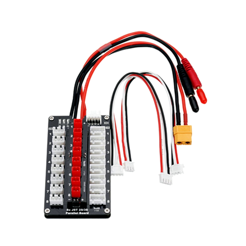 4.0mm Male XT60 Female to 8 Channels JST Female Parallel Balanced Charging Plate Board For 2S~3S Lithium Battery|1Pcs
